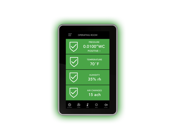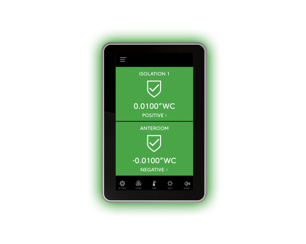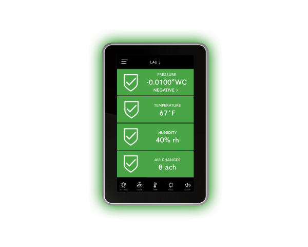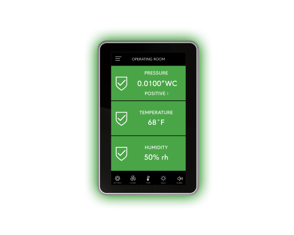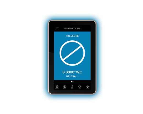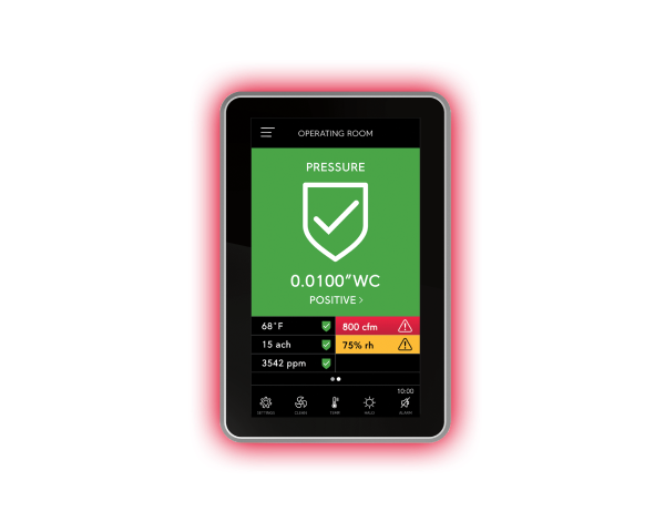 Easily verify room pressure,airflow, air changes per hour, temperature, humidity or CO₂ with a quick glance.