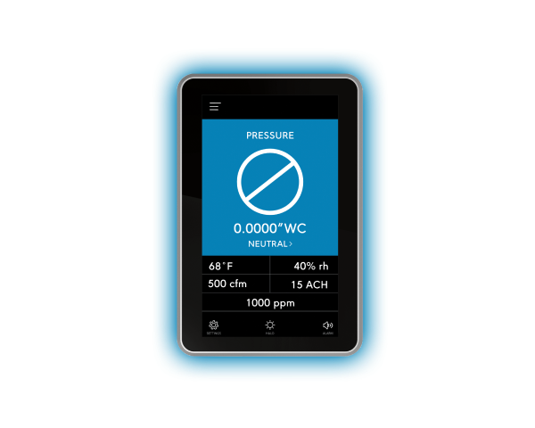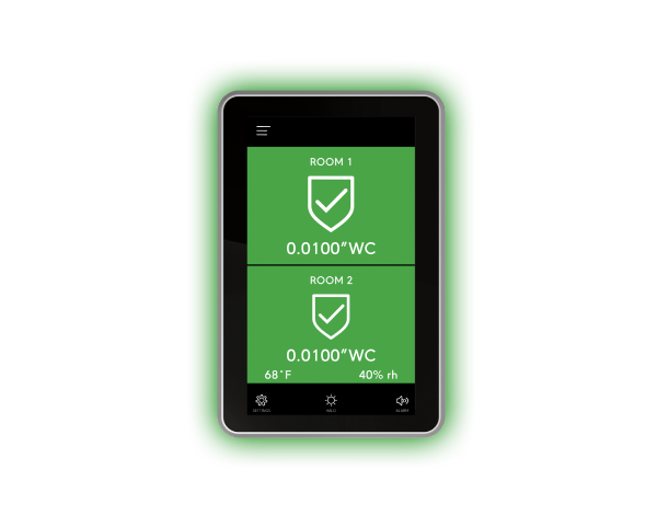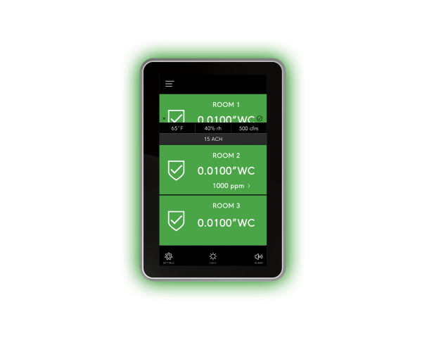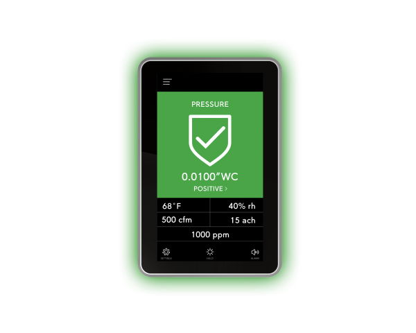 Easily verify room pressure,airflow, air changes per hour, temperature, humidity or CO₂ with a quick glance.